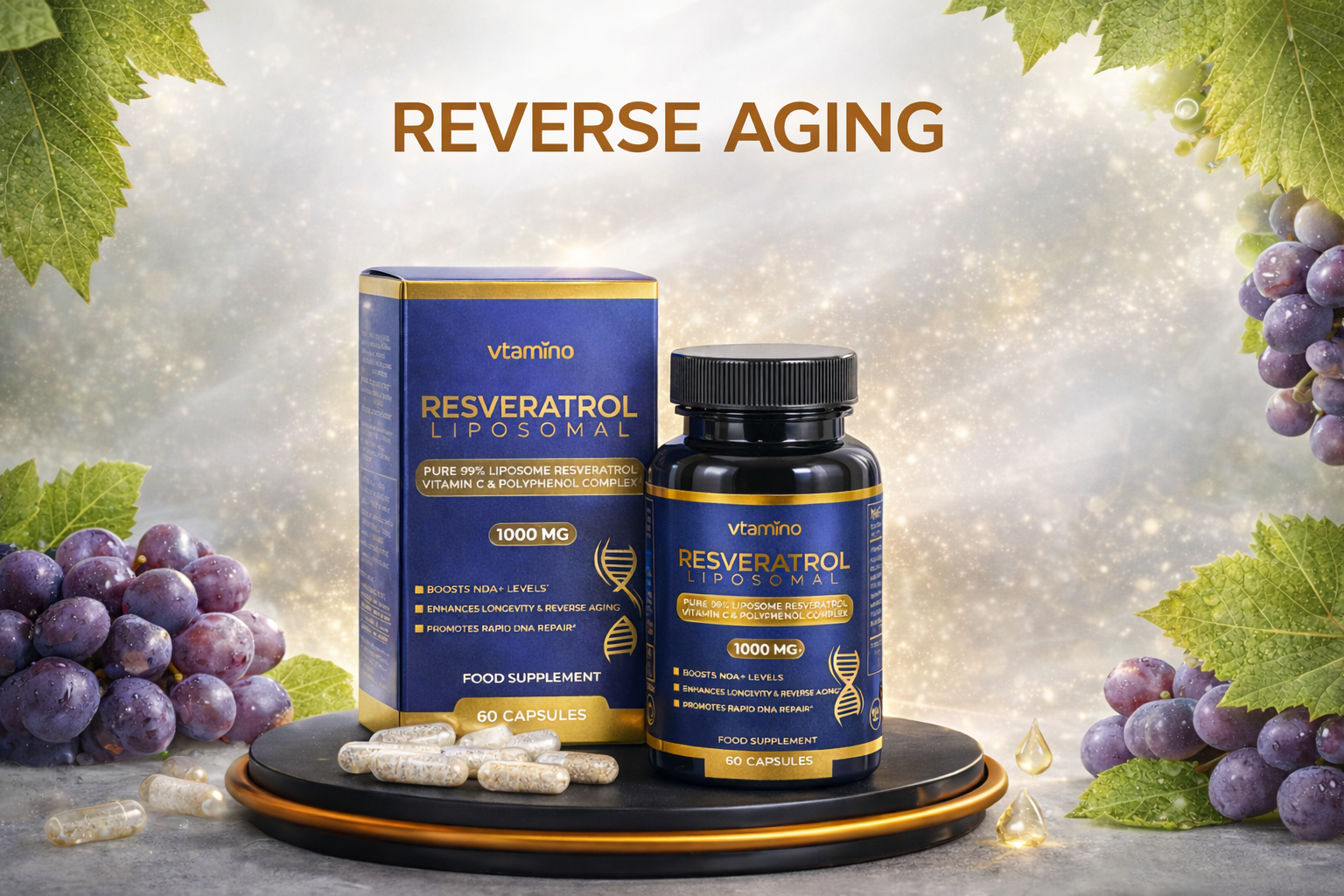 Unlock the secrets of longevity and youthful vitality with Vtamino Resveratrol Liposomal. Feel the difference with our scientifically formulated blend designed to support your anti-aging goals.